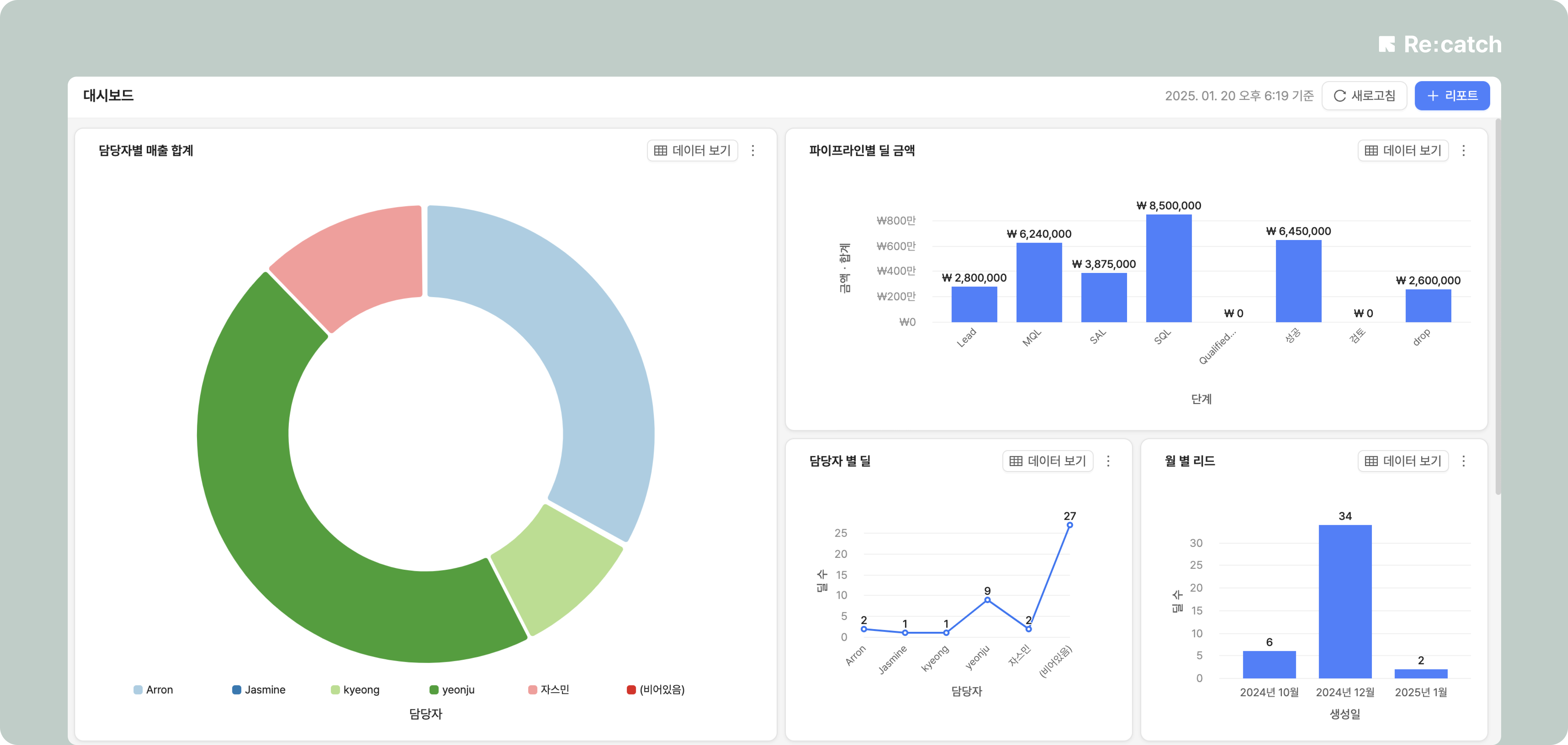 리캐치에 입력한 정보를 대시보드를 통해 한 눈에 확인하실 수 있어요!