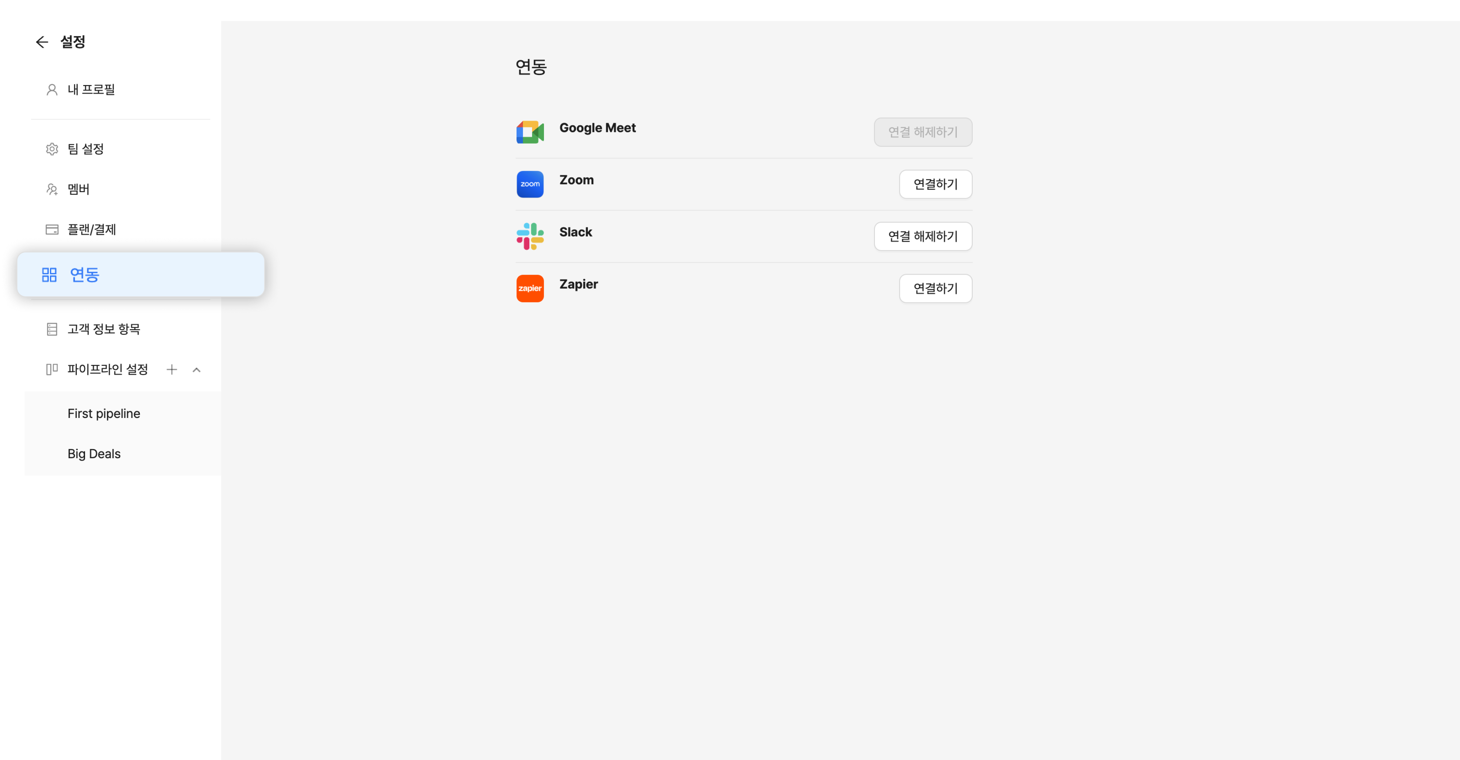 Zapier : CRM을 포함한 다양한 서비스와의 리캐치 데이터를 연동할 수 있어요.