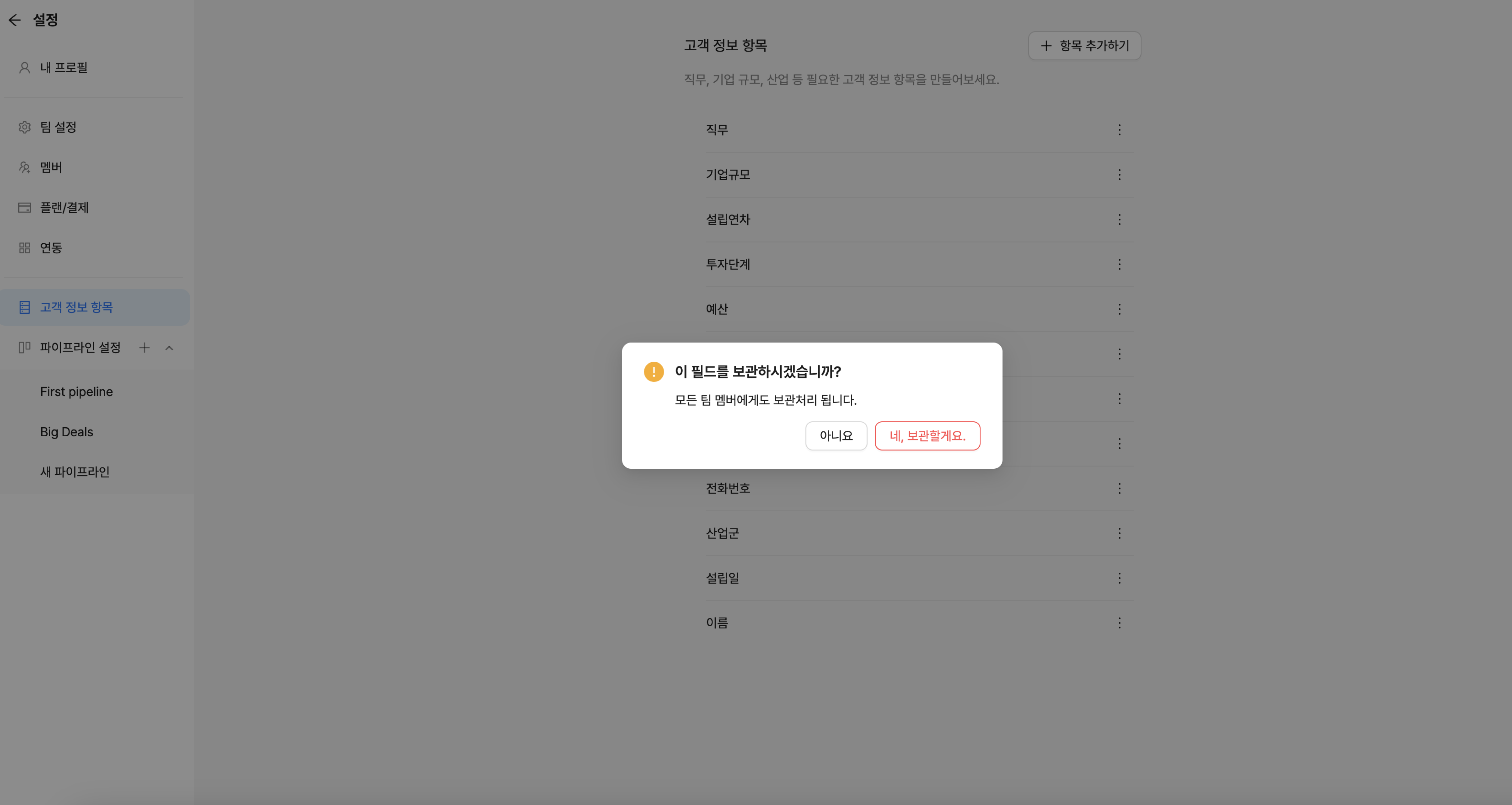 작성하신 고객 정보 항목은 '모든 리드'에서 반영됩니다.
