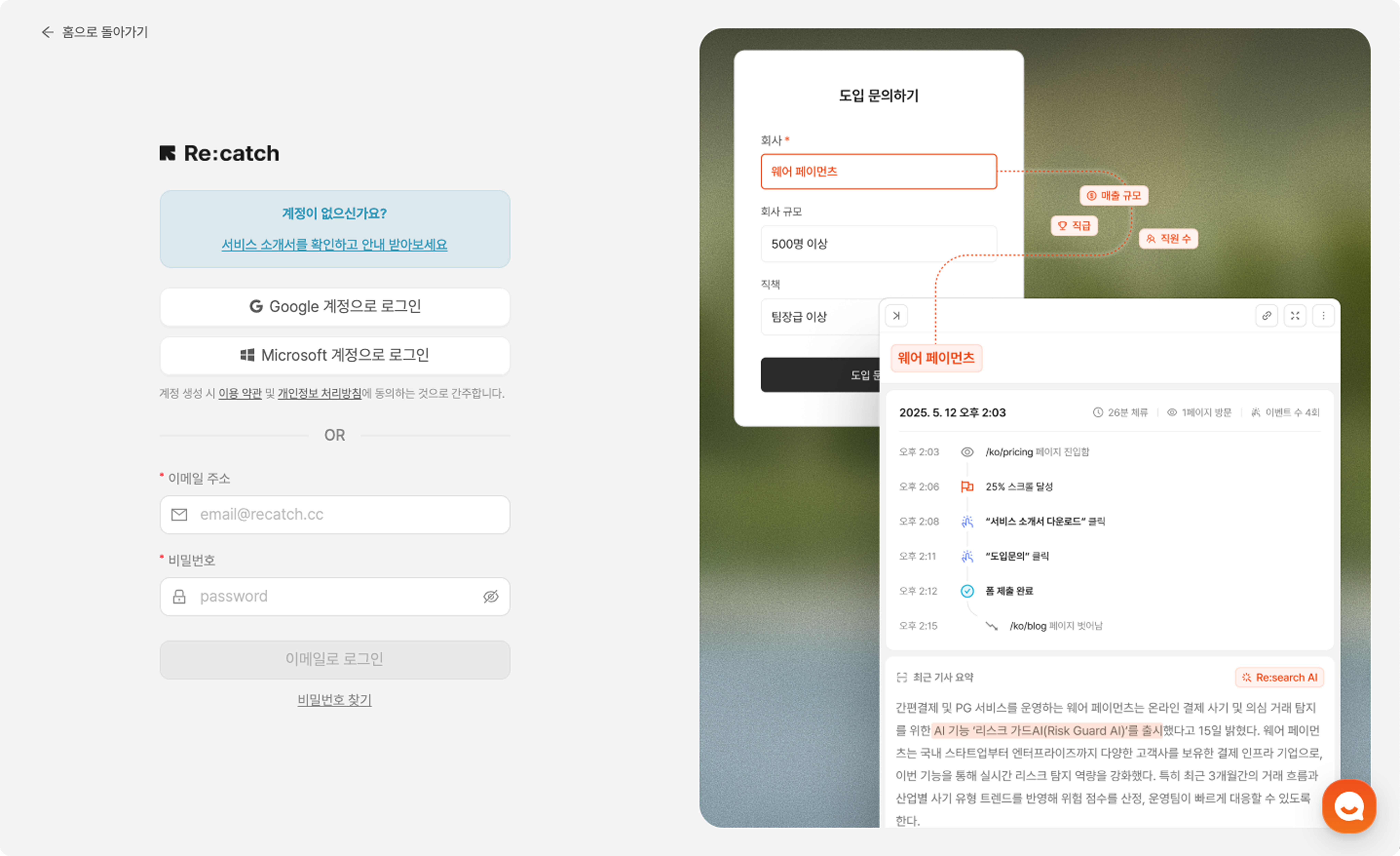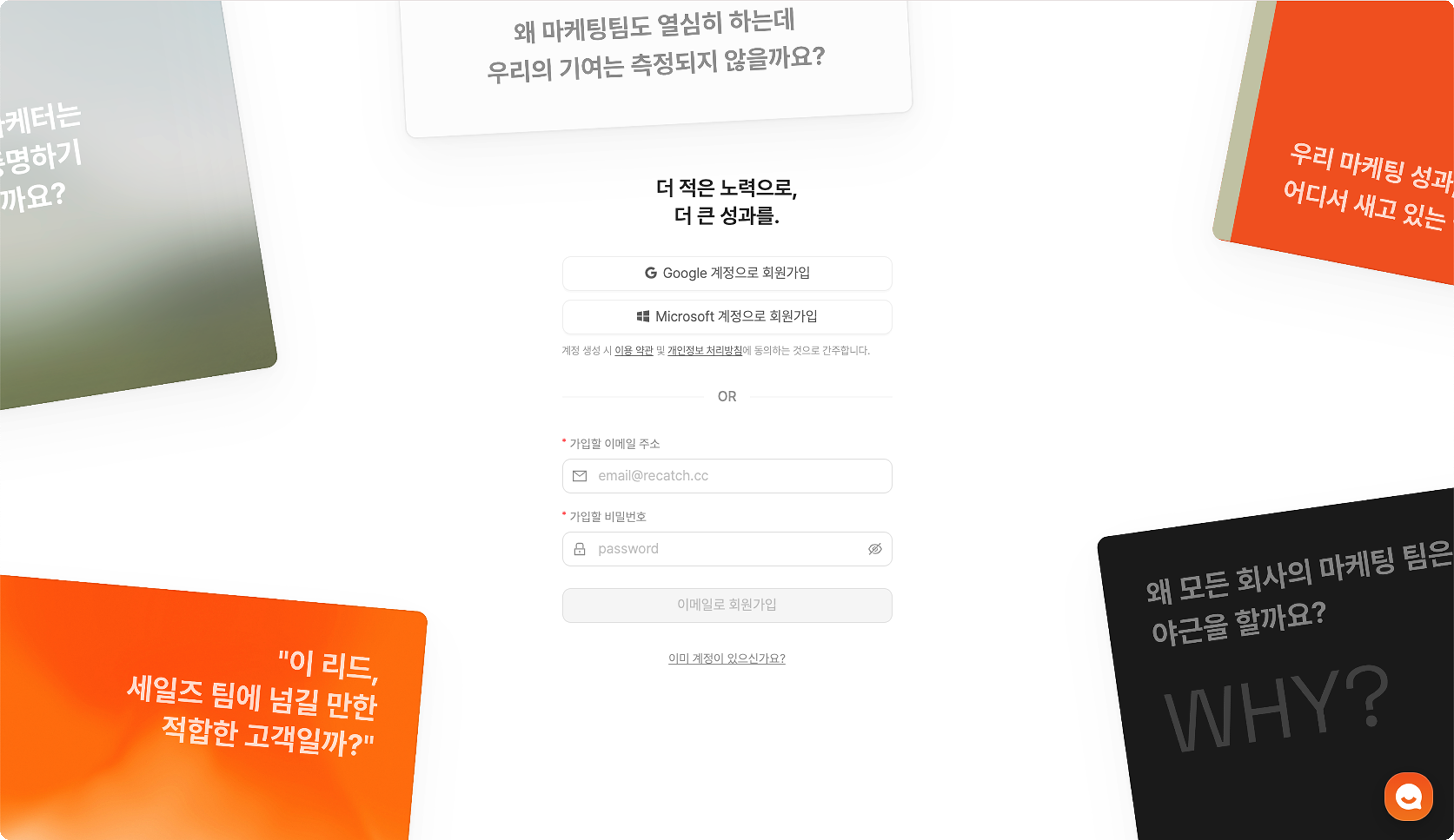 리캐치는 이메일 계정으로 이용할 수 있어요!