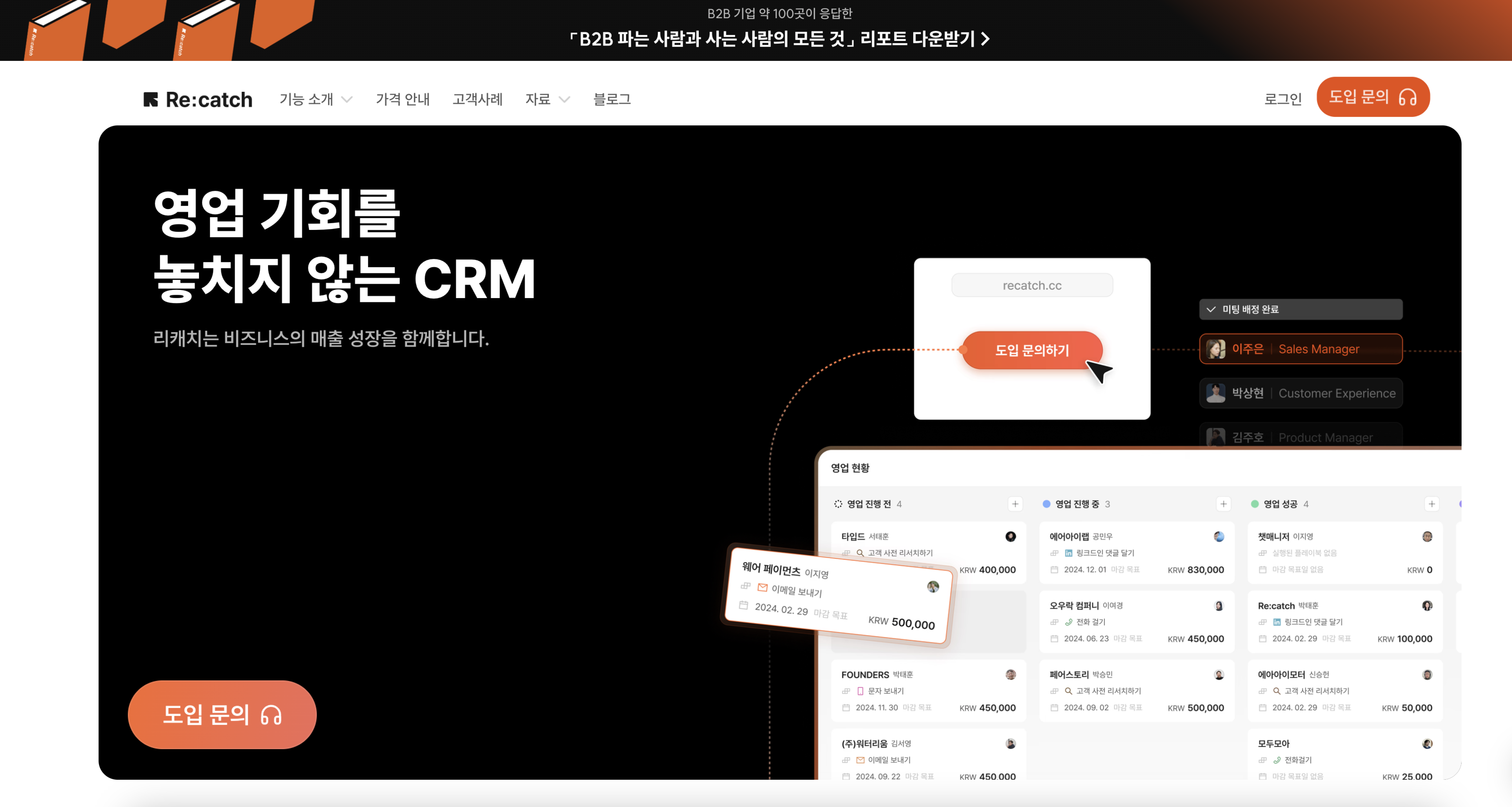 코드 적용 후 웹사이트를 배포하시면 리캐치를 통해 잠재 고객을 효율적으로 만날 수 있습니다.