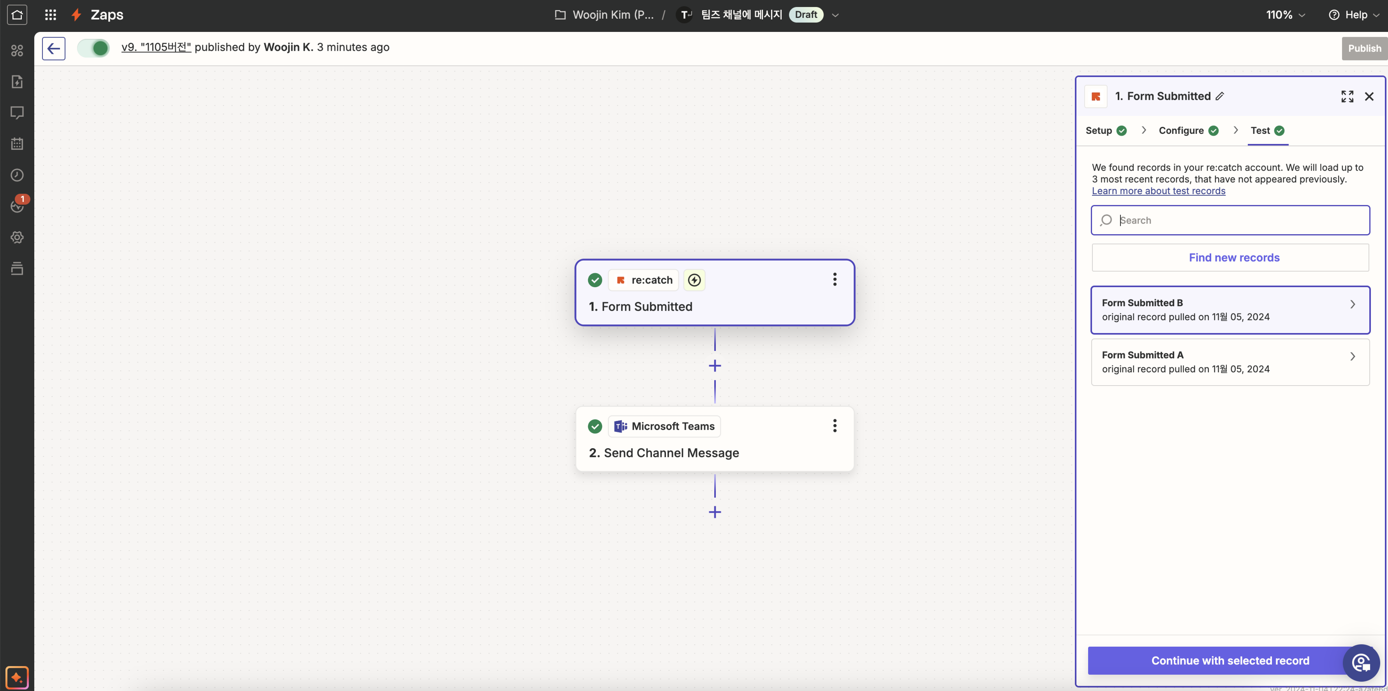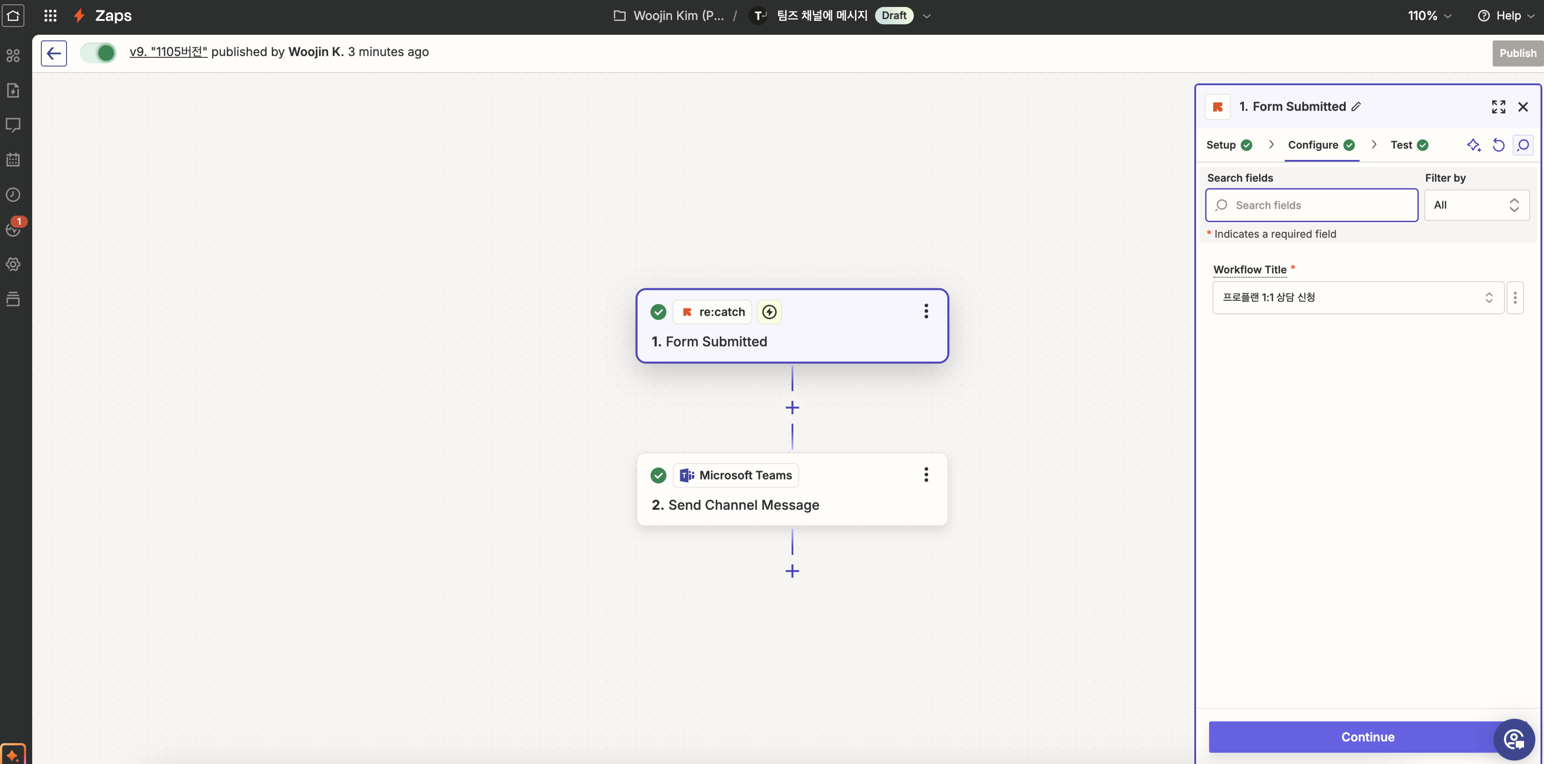 도움말: 아직 자피어를 연동하지 않으셨다면 Zapier 연동하기(클릭)를 확인해주세요!