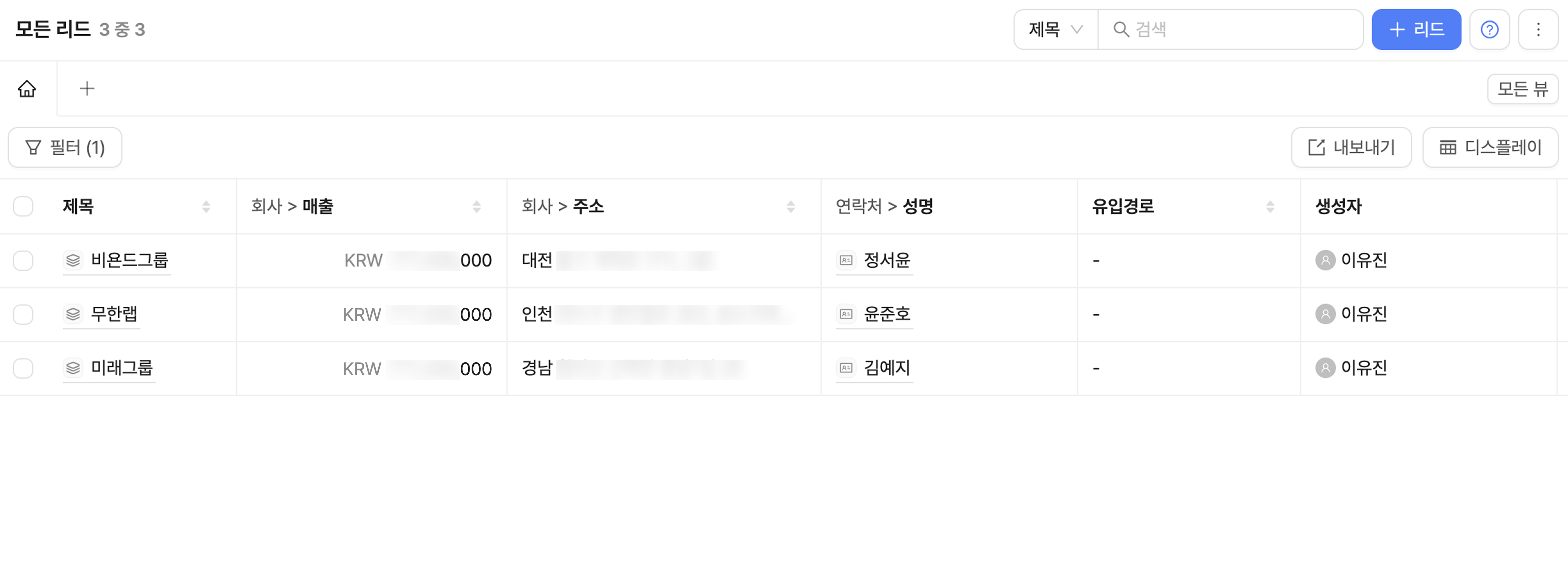 업로드된 리드를 확인하면 매출액과 주소 정보가 자동으로 채워진 것을 확인할 수 있어요!