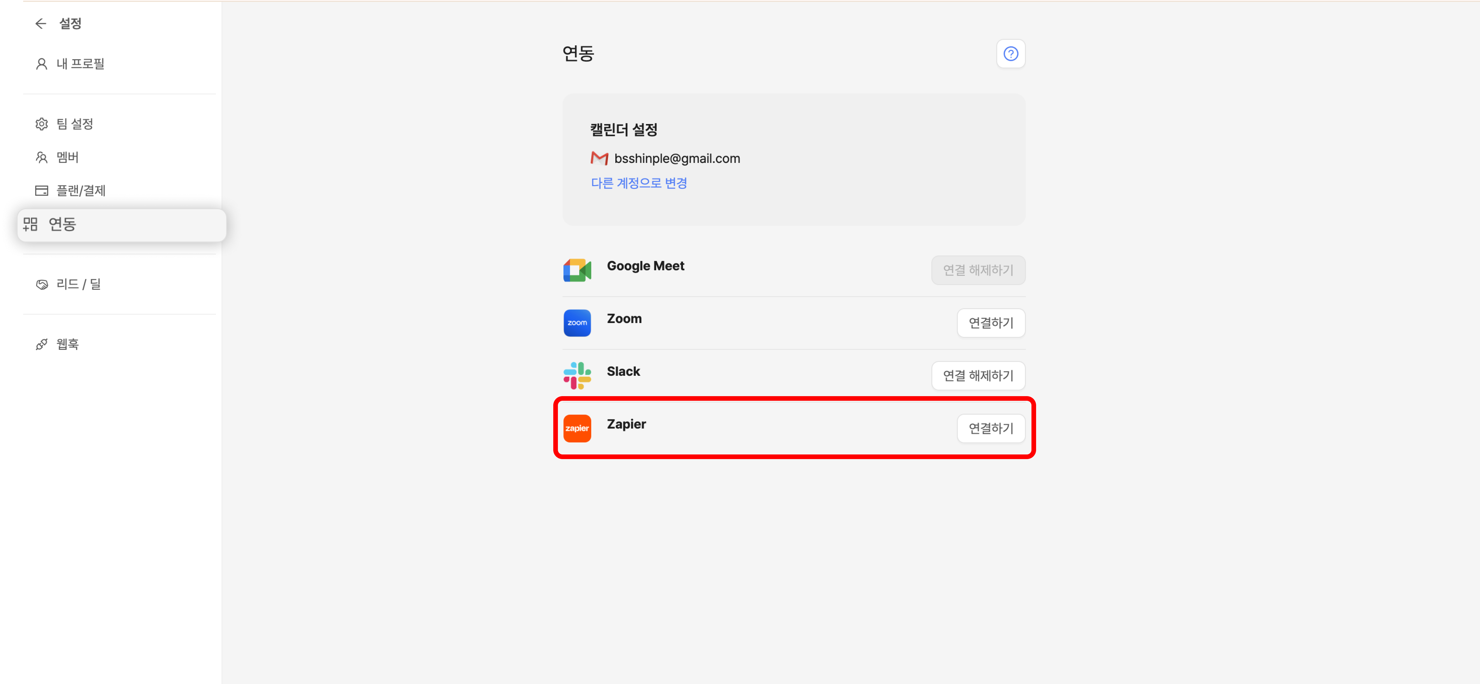 자피어를 연동하지 않더라도, 미팅이 확정되었을 때 슬랙 알림을 받고 싶으시다면 리캐치에서 슬랙을 연동하는 것만으로도 충분히 확인하실 수 있어요.